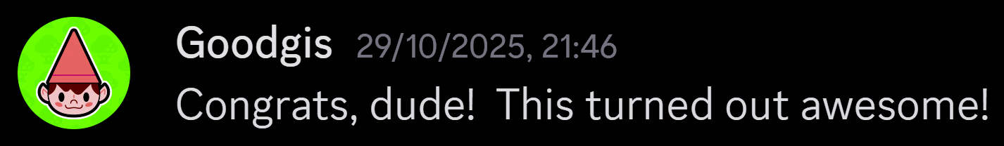 Dev I hope this comment is ok if you'd rather I leave a longer comment lmk I'm just trying something new with how I leave comments. Thanks again for introducing this game.